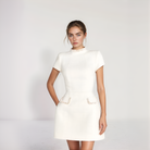 تتميز هذه الفستان القصير بقصة ضيقة تبرز القوام بأناقة. تضيف جيوبها المزخرفة لمسة من الرقي الدقيق، مثالية لمظهر أنيق وعصري.