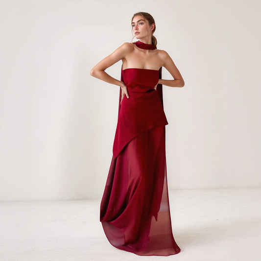 Perry | Long Two-Piece Dress – Strapless Elegance with Coordinated Scarf