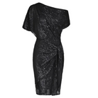 Tento midi šaty mají vzor s třpytivými flitry. Jejich elegantní střih zvýrazňuje siluetu. Ideální pro speciální příležitosti.