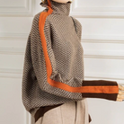 Denne trøje fremhæver en struktureret linje takket være sit arbejdede chevronmønster. De kontrasterende striber langs ærmerne tilføjer et markant visuelt præg uden at overdrive. Dens let løse pasform gør det nemt at sammensætte hverdags- eller mere festlige outfits.