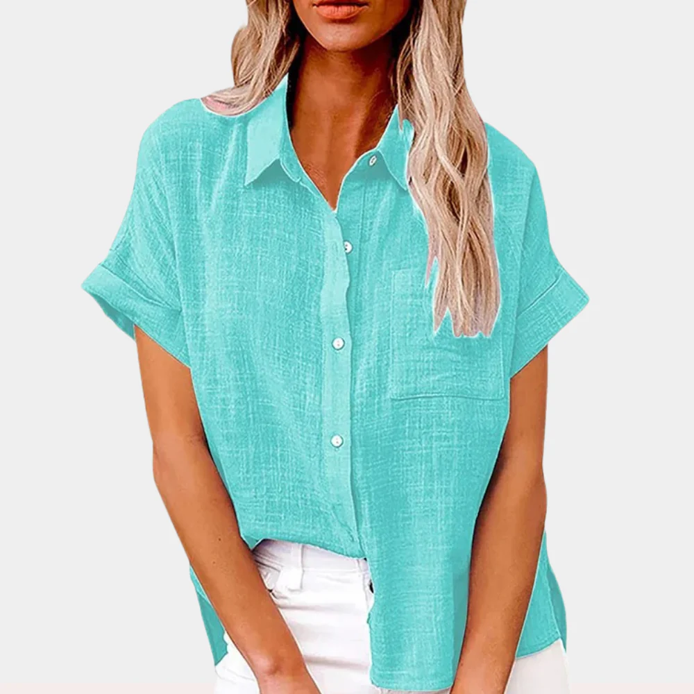 Diese Bluse bietet einen lockeren Schnitt, ideal für heiße Tage. Ihr klassischer Kragen und die Knopfleiste verleihen einen eleganten Touch. Perfekt für einen lässigen oder professionellen Look.