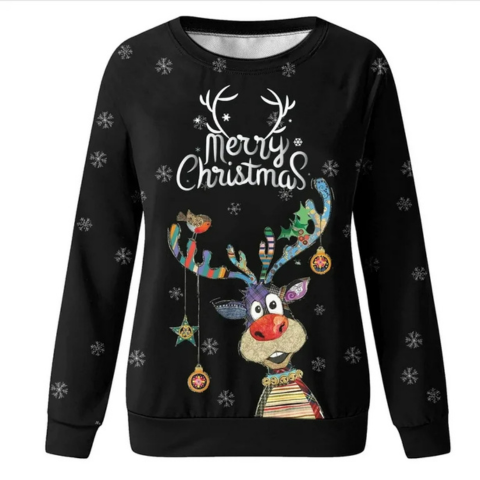 Αυτό το πουλόβερ αναδεικνύει έναν τάρανδο εικονογραφημένο σε μια χαρούμενη και πολύχρωμη στυλ. Οι νιφάδες και οι διακοσμήσεις προσθέτουν μια οπτική πινελιά που θυμίζει το ζεστό πνεύμα της εποχής. Εύκολο να φορεθεί καθημερινά, προσθέτει μια παιχνιδιάρικη νότα σε όλες τις ενδυμασίες του τέλους του έτους.