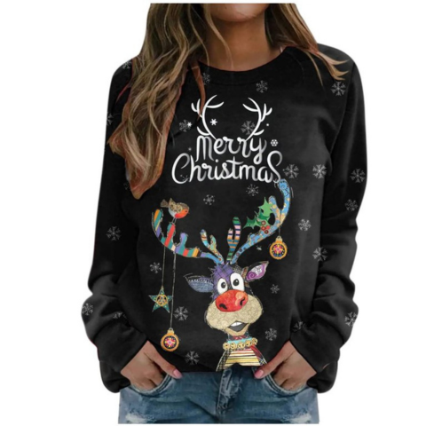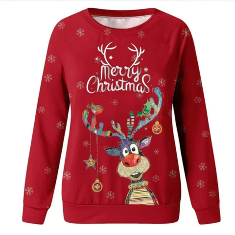 Νατάσα | Χριστουγεννιάτικο πουλόβερ Γυναίκας — Ελάφι με Εικονογραφήσεις και Χειμωνιάτικες Λεπτομέρειες