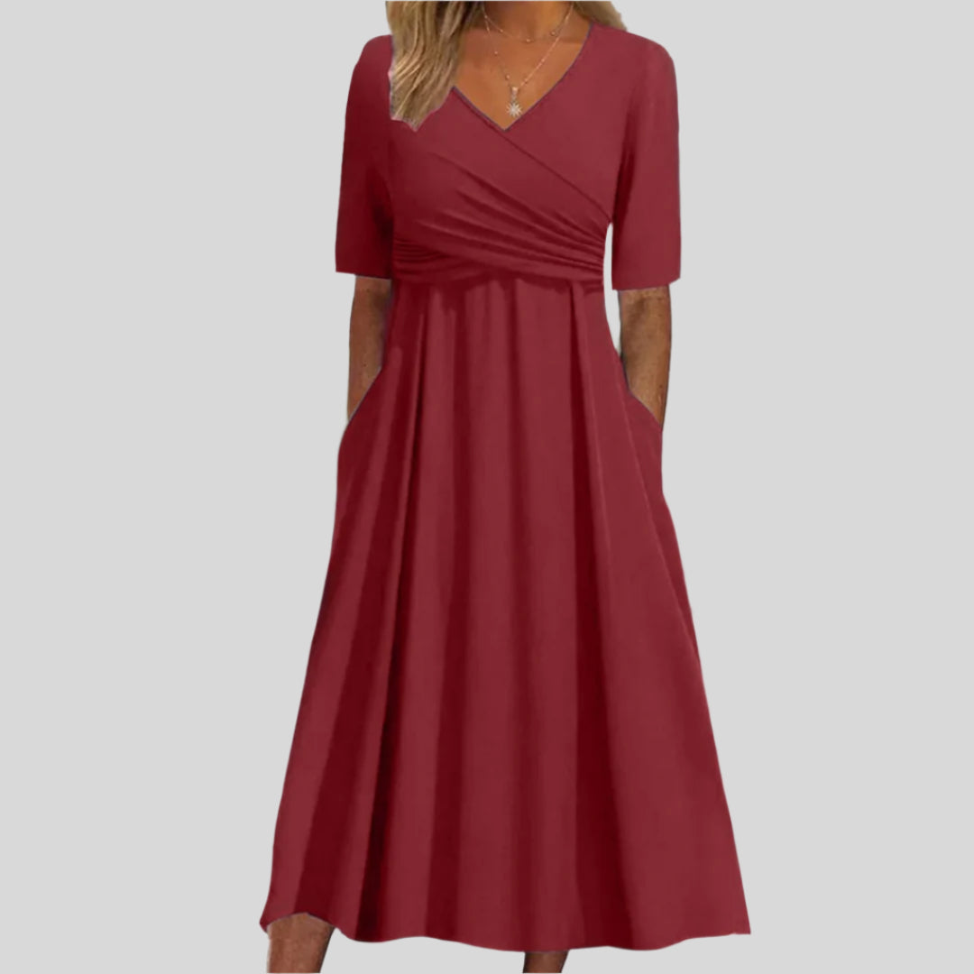 Φαουστίν | Μακριά Φόρεμα Διασταυρούμενο Με Κοντά Μανίκια