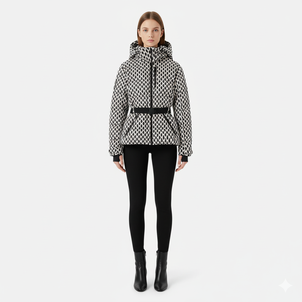 Farah | Chaqueta de Invierno Ceñida Mujer — Elegancia Gráfica & Calor Moderno