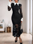 Hanna | Tyylikäs Midi Mekko Kontrastikauluksella Ja Pitkillä Hihoilla