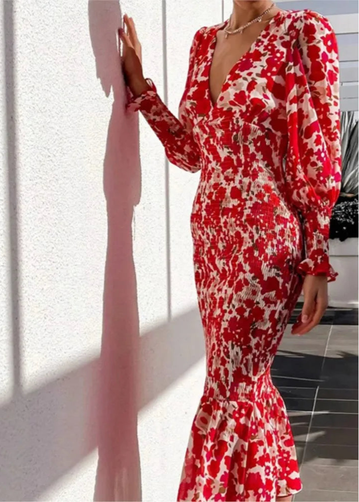 Andrea | Pitkä Boheemi Chic Mekko – Eleganssi Punainen Ja Romanttinen Henki