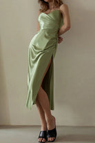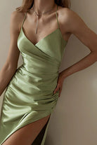 ג'ובנה | שמלת מידי מפוצלת – סגנון קל ורצועות עדינות