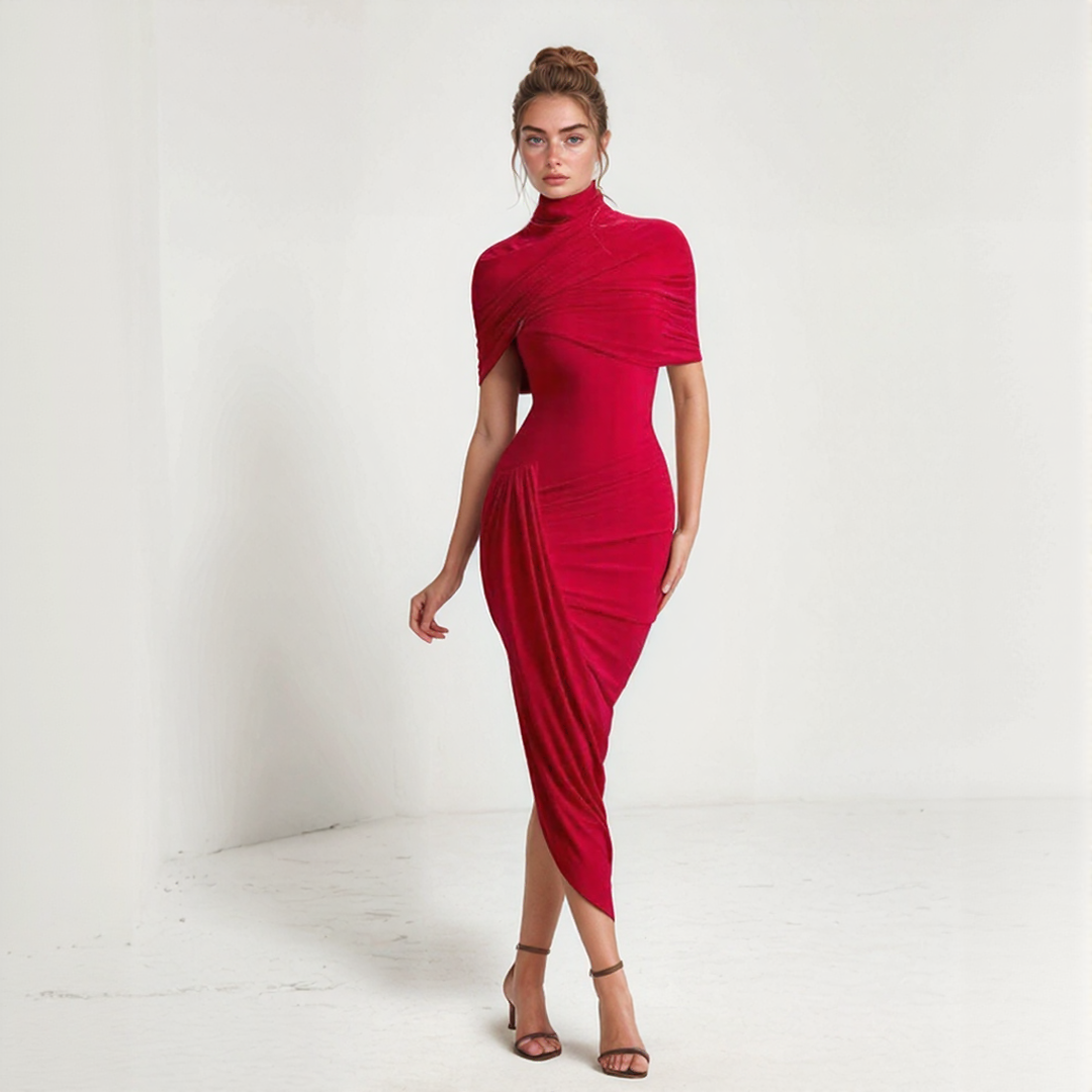Nelly | Abito Lungo Elegante – Taglio Asimmetrico E Foulard Integrato