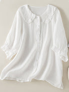 Denne knappeblusen avslører en flytende og feminin silhuett. Kragen med volanger gir en delikat og romantisk touch. Den komfortable passformen gjør den til et ideelt valg for en elegant stil i hverdagen.