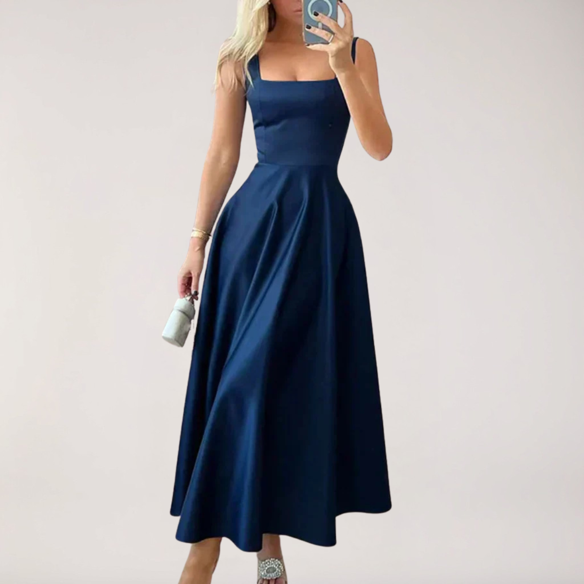 Rim | Elegant Midikjole med Fyrkantet Utringning