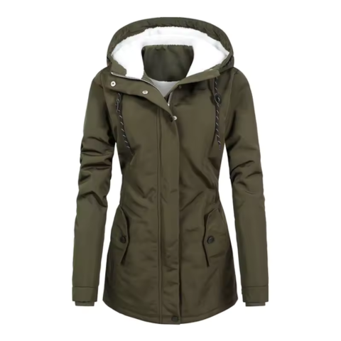 Sania | Lange Damesjas — Met Kap En Knopzakken