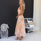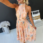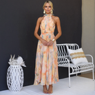 Katya | Długa Sukienka Boho – Dekolt Halter i Elegancki Wzór Kwiatowy