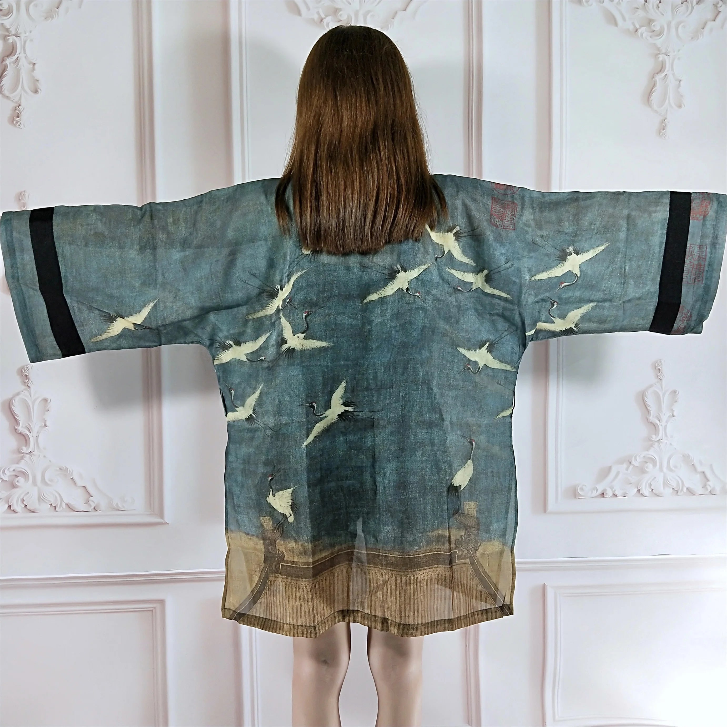 Rim-Roz | Jachetă Kimono cu Motif Păsări Japoneze