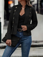 • Dekorativa knappar framtill och på ärmarna för en uttalad stil.
